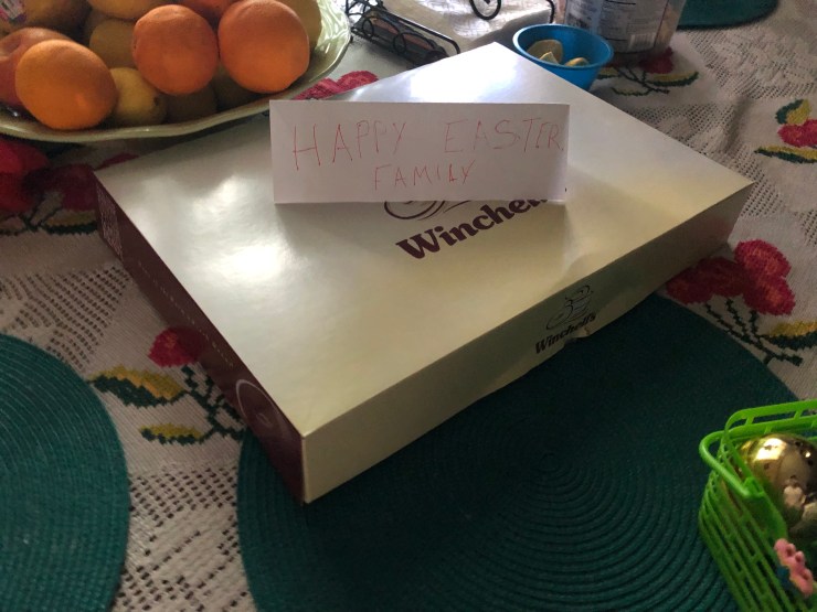 On Sunday, it was Easter, and since the pain had gone down a little, so we all went to my cousin’s house to celebrate Easter, like we do every year. Before we went, in the morning I got a Easter basket and my uncle brought me and my family some donuts, so already I was having a good day. I spent the morning checking the candy I got in the basket, which wasn’t a lot but I was still glad I got some, and preparing to go to my cousin’s house for Easter. We waited for my dad to get home so me and the entire family to go together. So my dad arrived, he got ready and went to my cousin’s house.